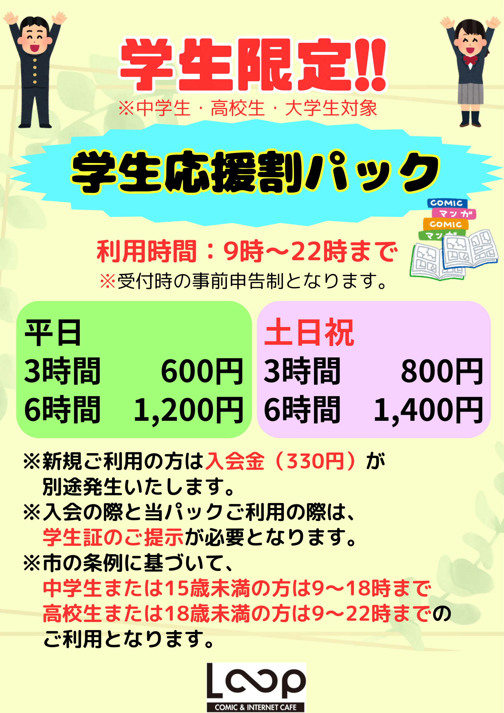 - 当店のご利用時間に関しては、満16歳未満の方は18時までとし、満18歳未満の方は22時までとさせていただきます。また、小学生以下の入場は(時間帯にかかわらず)保護者の同伴が必要です。